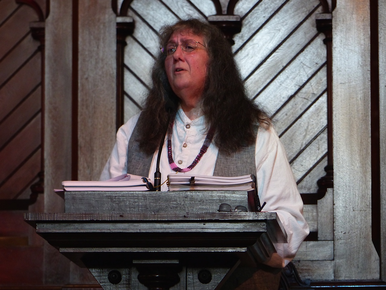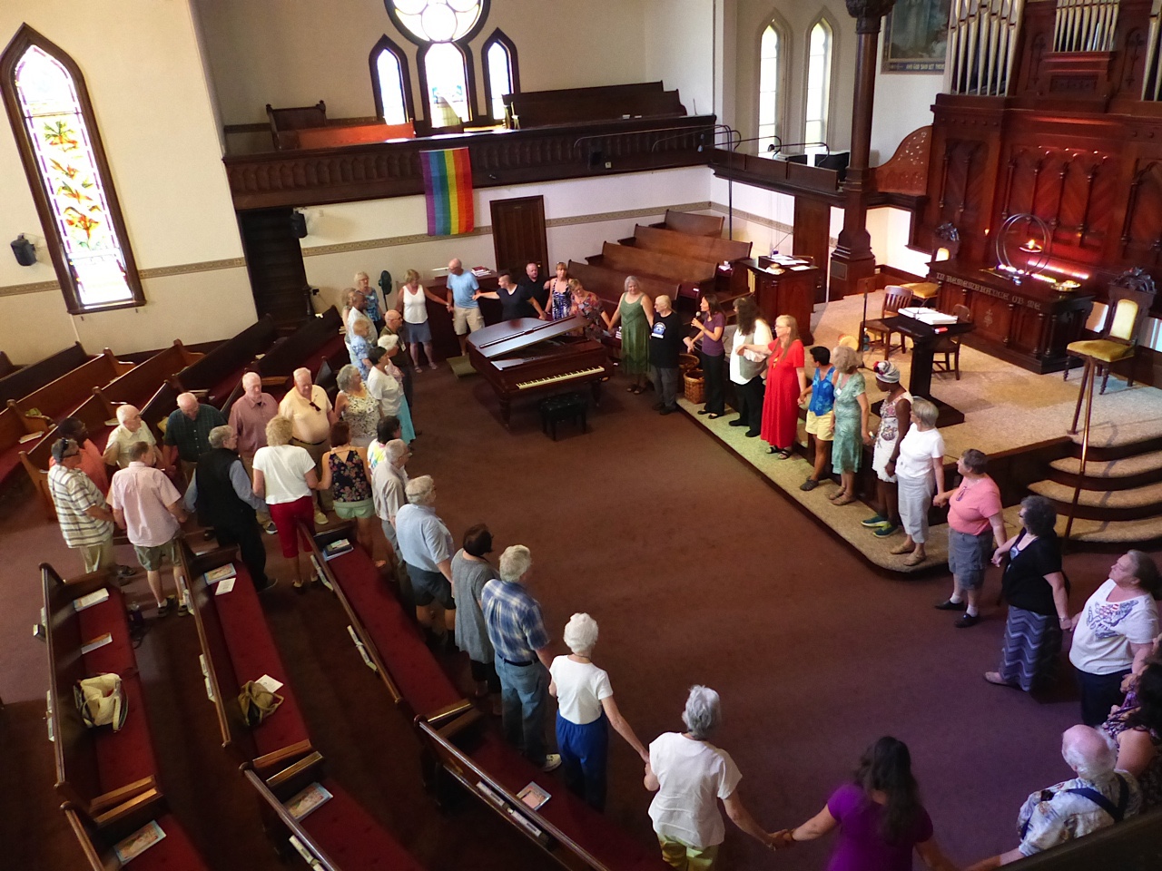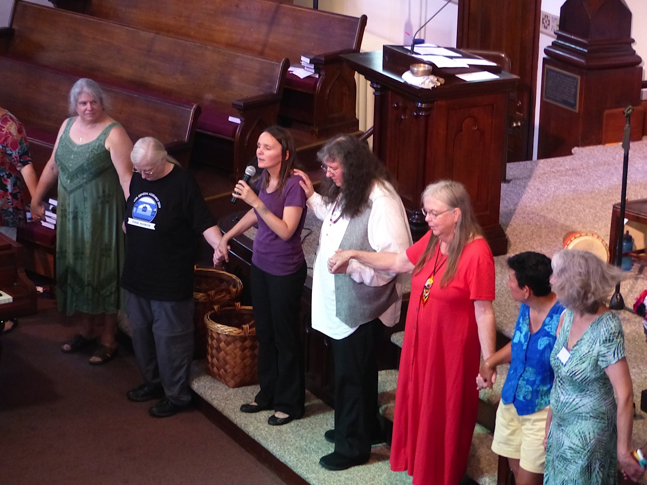 Heather & Bernice leading the morning service at the First Universalist Church of Auburn, ME on July 14, 2019. (Photos by Toby Haber)